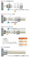 ●再利用可能:エイトロックシリーズはスリーブ以外、再利用できます。ホースが劣化したら、ホースと専用スリーブを交換し、継手はそのまま再利用できます。●適合ホース:スーパー柔軟フッ素ホース、スーパー柔軟フッ素ホーススプリング、導電スーパー柔軟フッ素ホーススプリング、柔軟フッ素ホース、プレッシャーホース、耐油プレッシャーホース、サンフーズ、KYサンフーズ、KYコイル ●材質:SUS304(本体・リング・ナット)/POM(スリーブ)●標準重量:111g/個